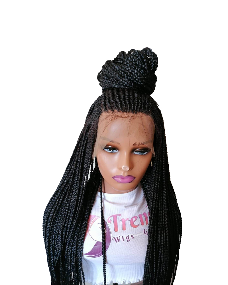 Braided lace frontal wig, Very full density and long yet it is light weight. Neatly braided wig .Has baby hair, The wig is about 24inches . The wig comes with a strong wig cap that fits all head sizes ,its adjustable and has an extra belt; The wig is durable and can be renewed by dipping in hot water .he wig has very high volume !!!; Maintenance: wash in a warm water with Good shampoo & Conditioner. THIS WIG CAN BE MADE IN ANY COLOUR THAT IS NORMAL TO BRAIDS ,AFTER ORDERING SPECIFY THE COLOUR YOU WANT.